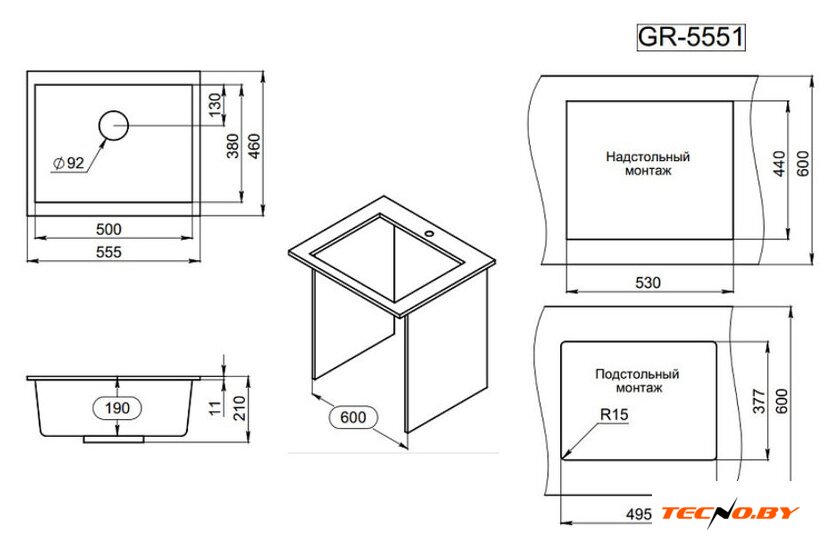 Способ установки | врезная на столешницу, врезная под столешницу, врезная вровень со столешницей |