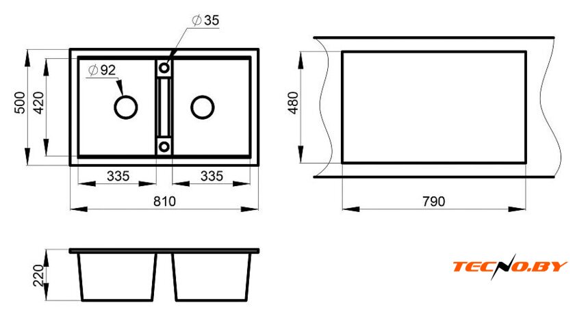 врезная на столешницу, искусственный камень, размеры: 81x50 см, в шкаф 80 см