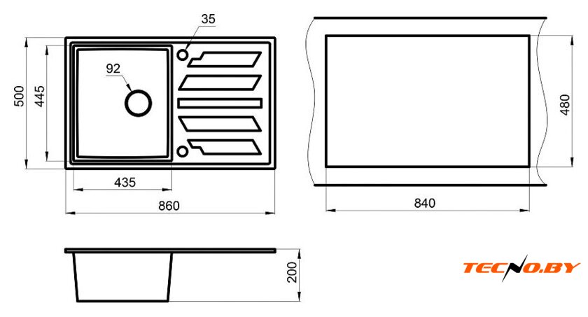врезная на столешницу, искусственный камень, размеры: 86x50 см, в шкаф 60 см