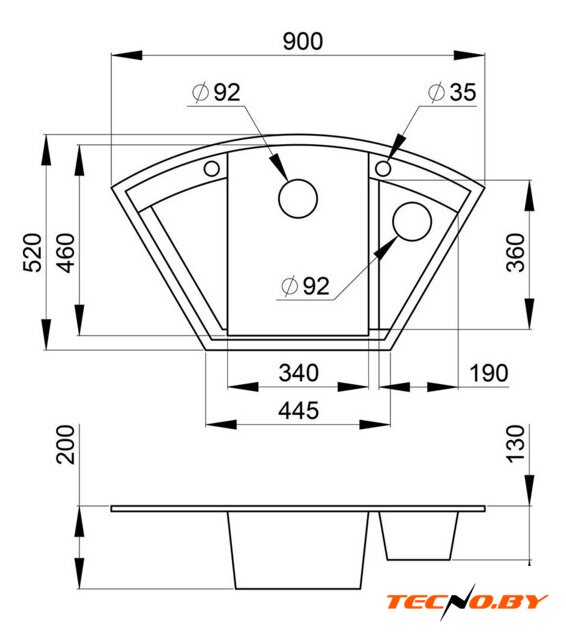 врезная на столешницу, искусственный камень, размеры: 90x52 см