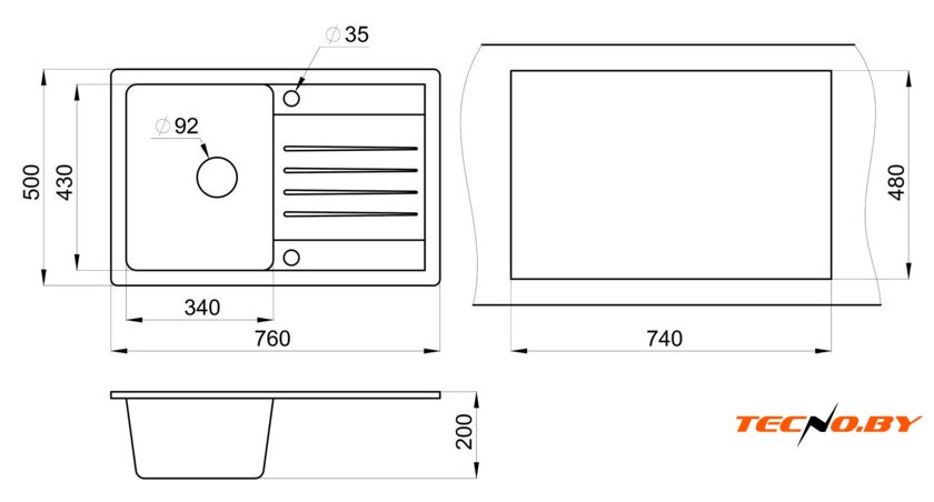 врезная на столешницу, искусственный камень, размеры: 75x49.5 см, глубина чаши: 20 см, в шкаф шириной от 60 см