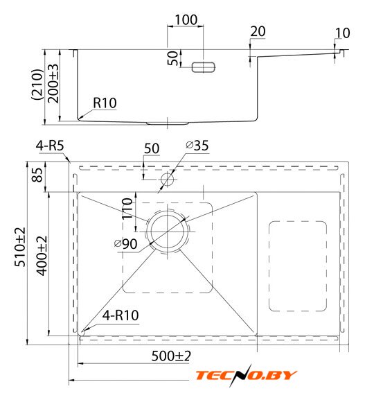 врезная на столешницу/врезная под столешницу, нержавеющая сталь, фактура: полированная, размеры: 54x44 см, глубина чаши: 20 см, в шкаф шириной от 60 см