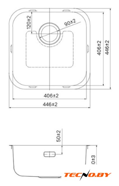 врезная под столешницу, нержавеющая сталь, фактура: матовая, размеры: 44x44 см, глубина чаши: 22 см