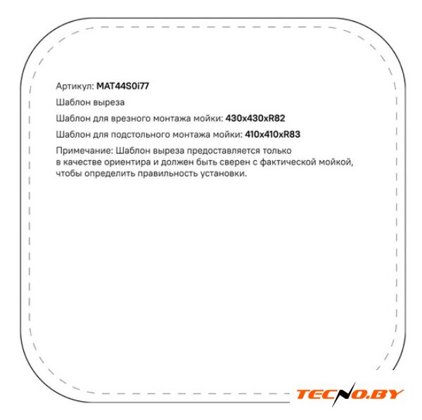 | Комплектация | крепления (2 комплекта), сифон (плоский), выпуск (донный клапан), шаблон для врезки, перелив, мойка |