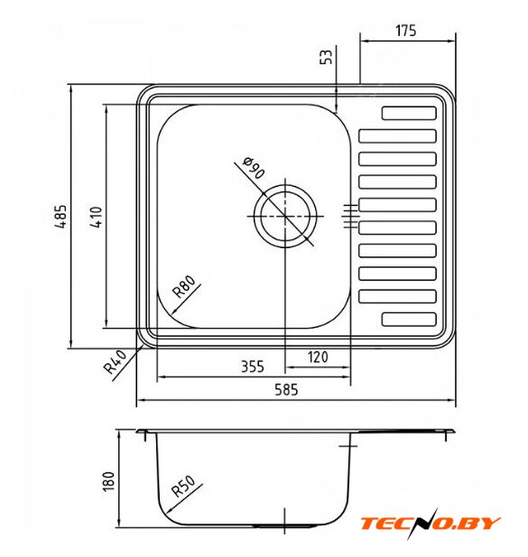 врезная на столешницу, искусственный камень, фактура: матовая, глубина чаши: 20 см, в шкаф шириной от 55 см
