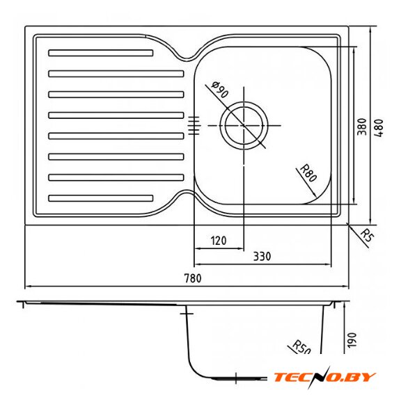 врезная на столешницу, искусственный камень, размеры: 58x47 см, глубина чаши: 20 см, в шкаф шириной от 45 см