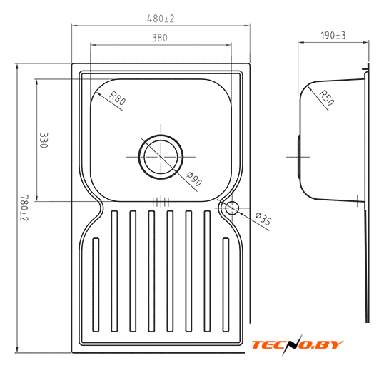врезная на столешницу, искусственный камень, размеры: 83x48 см, глубина чаши: 19 см, в шкаф шириной от 50 см