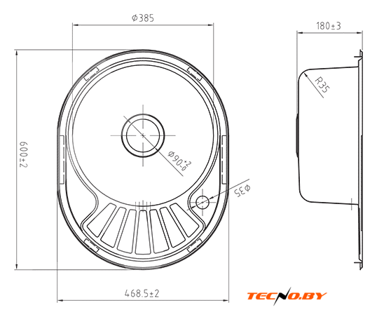 врезная на столешницу, нержавеющая сталь, фактура: сатин, размеры: 65x46 см, глубина чаши: 18 см