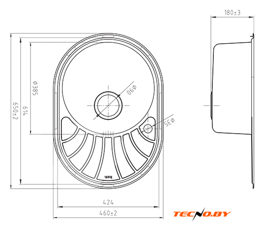 врезная на столешницу, нержавеющая сталь, фактура: сатин, размеры: 65x46 см, глубина чаши: 18 см