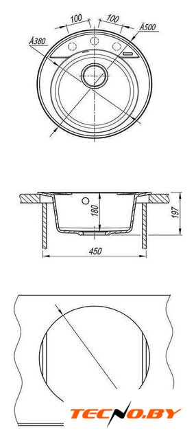 врезная на столешницу, искусственный камень, фактура: матовая, размеры: 50x45 см, глубина чаши: 18 см, в шкаф шириной от 43 см