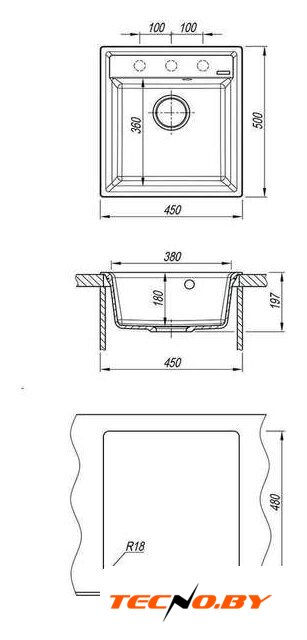 врезная на столешницу, нержавеющая сталь, фактура: матовая, размеры: 45x50.5 см, глубина чаши: 20 см