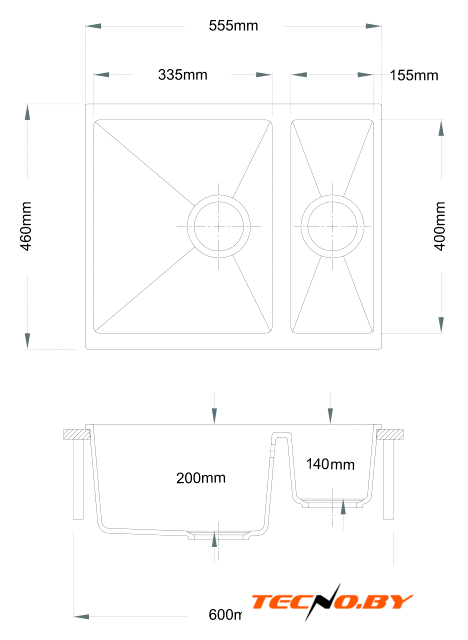 врезная на столешницу, искусственный камень, размеры: 59x50 см, глубина чаши: 22 см, в шкаф шириной от 60 см