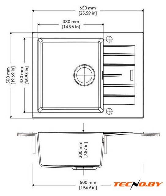 врезная на столешницу, искусственный камень, размеры: 65x50 см, глубина чаши: 20 см, в шкаф шириной от 50 см