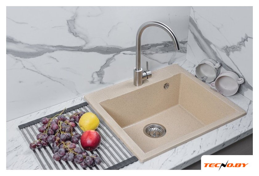 врезная на столешницу, искусственный камень, фактура: матовая, размеры: 61x48 см, глубина чаши: 18 см, в шкаф шириной от 50 см