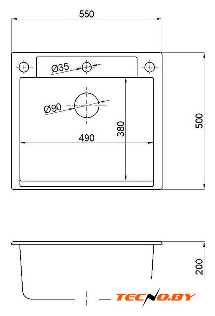 врезная на столешницу, искусственный камень, размеры: 57x50.5 см, глубина чаши: 17.5 см, в шкаф шириной от 60 см
