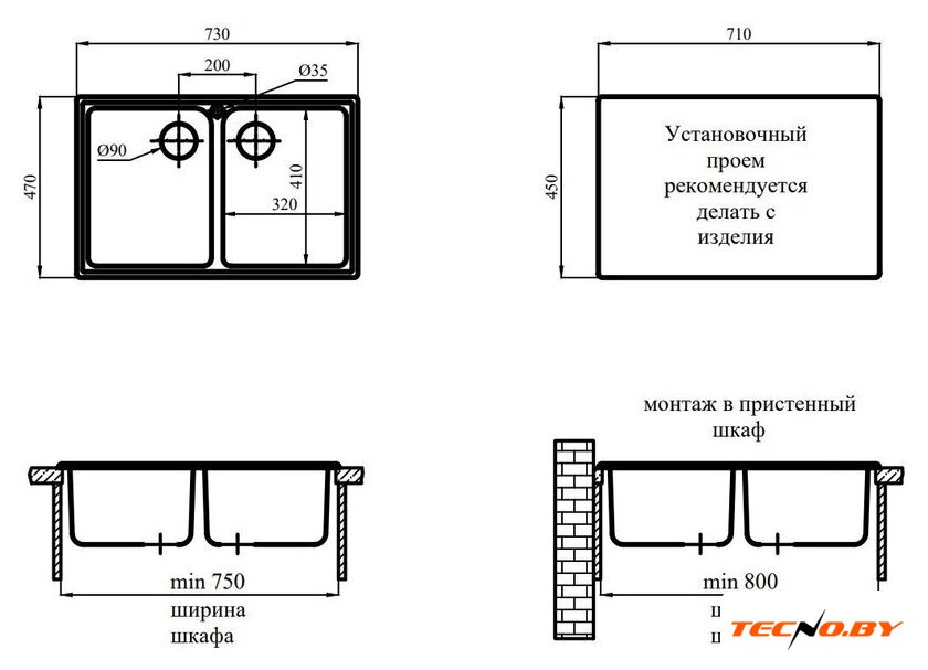 врезная на столешницу, искусственный камень, размеры: 73.2x47.5 см, глубина чаши: 18 см, в шкаф шириной от 70 см