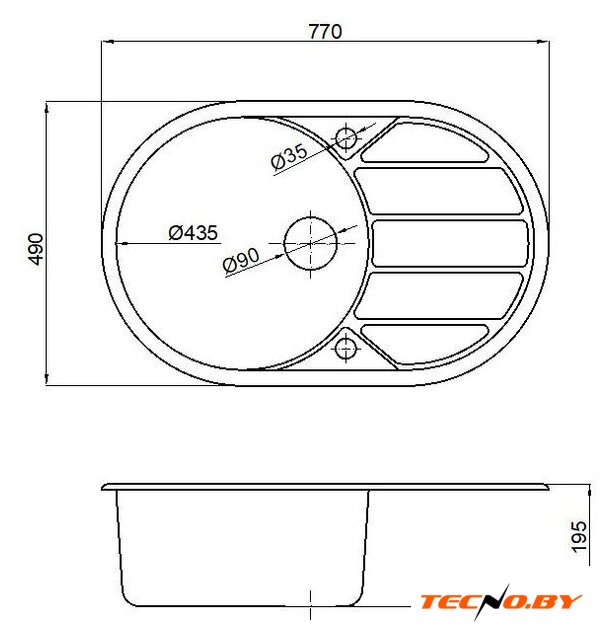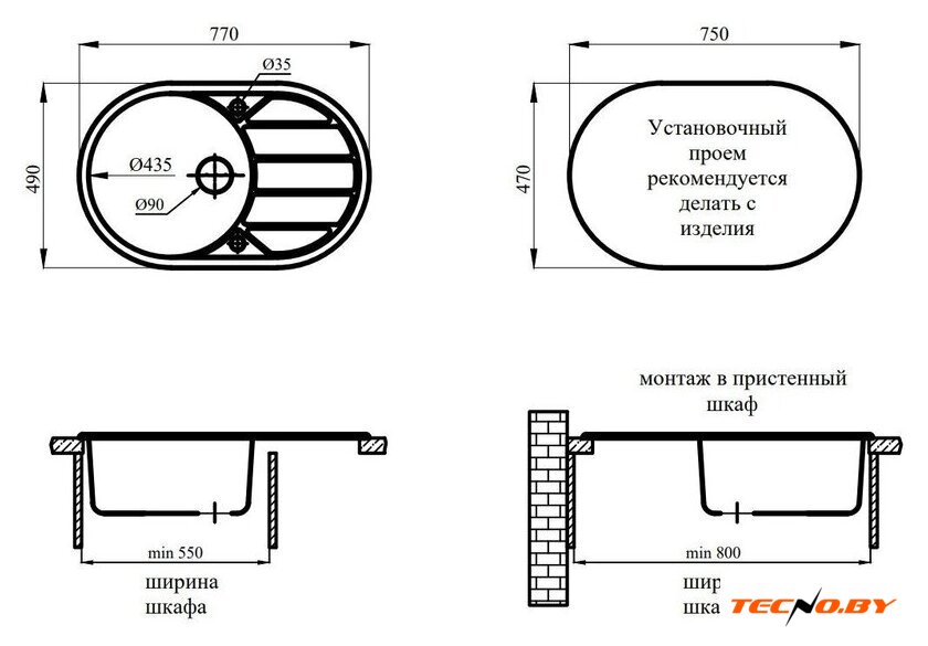 врезная на столешницу, кварц, фактура: матовая, размеры: 49x77 см, глубина чаши: 19.5 см
