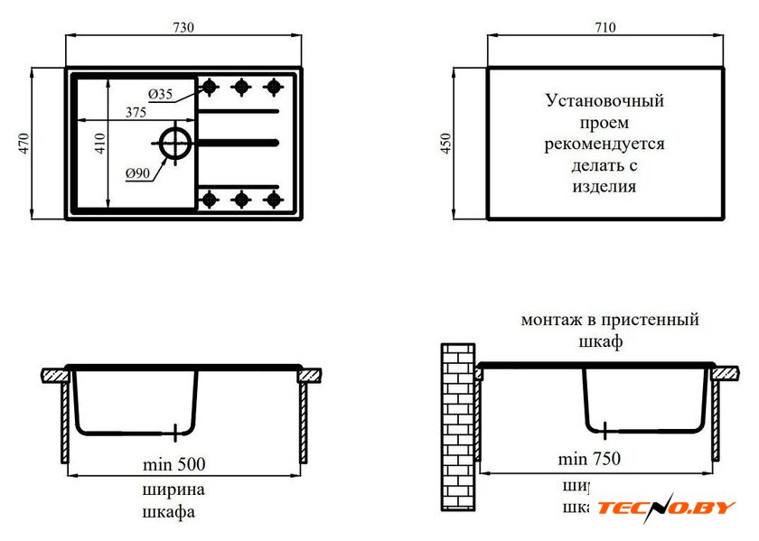 врезная на столешницу, искусственный камень, размеры: 47x73 см