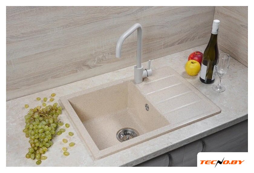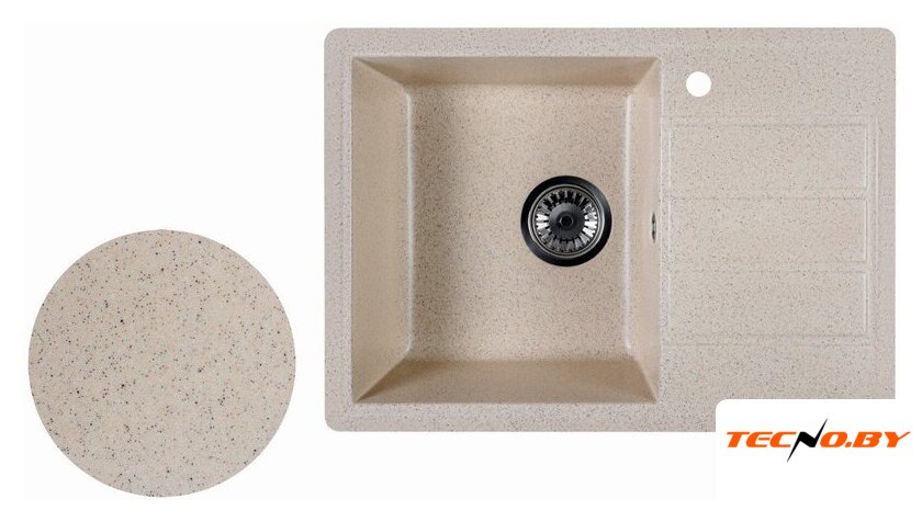 врезная на столешницу, искусственный камень, размеры: 57.5x49 см, глубина чаши: 19.5 см, в шкаф шириной от 45 см