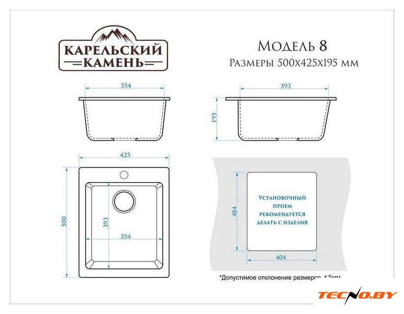 врезная на столешницу, искусственный камень, фактура: матовая, размеры: 47x47 см, глубина чаши: 19 см
