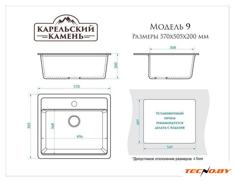 врезная на столешницу, искусственный камень, размеры: 49.5x45.5 см, глубина чаши: 19 см, в шкаф шириной от 50 см