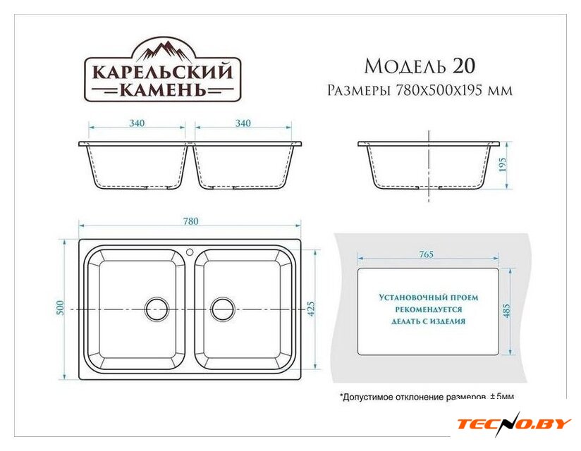 врезная на столешницу, искусственный камень, размеры: 73.2x47.5 см, глубина чаши: 18 см, в шкаф шириной от 70 см