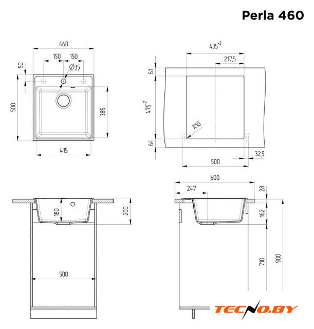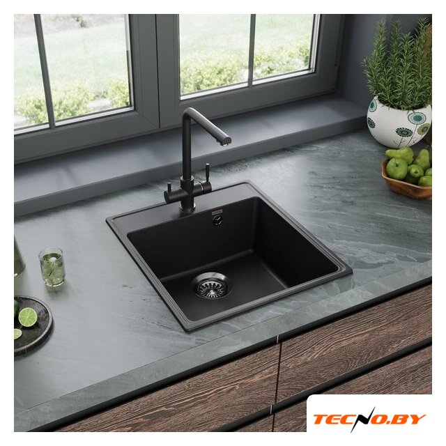 врезная под столешницу, кварц, фактура: матовая, размеры: 50.5x50.5 см, глубина чаши: 18 см, в шкаф шириной от 60 см