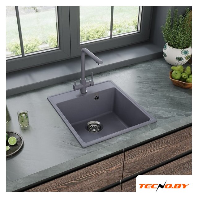 врезная под столешницу, кварц, фактура: матовая, размеры: 50.5x50.5 см, глубина чаши: 18 см, в шкаф шириной от 60 см