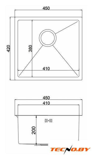 врезная на столешницу, нержавеющая сталь, размеры: 50x55 см, глубина чаши: 20 см