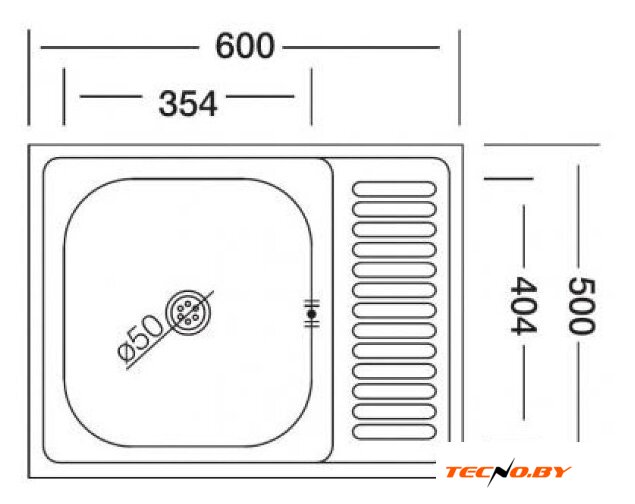 накладная, нержавеющая сталь, фактура: матовая, размеры: 50x60 см, глубина чаши: 14 см, в шкаф шириной от 50 см