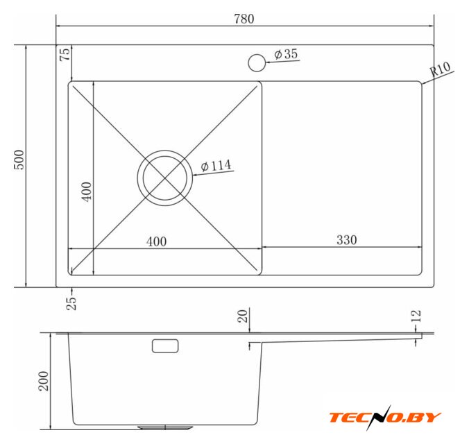врезная на столешницу, нержавеющая сталь, фактура: матовая, размеры: 60x48 см, глубина чаши: 22 см