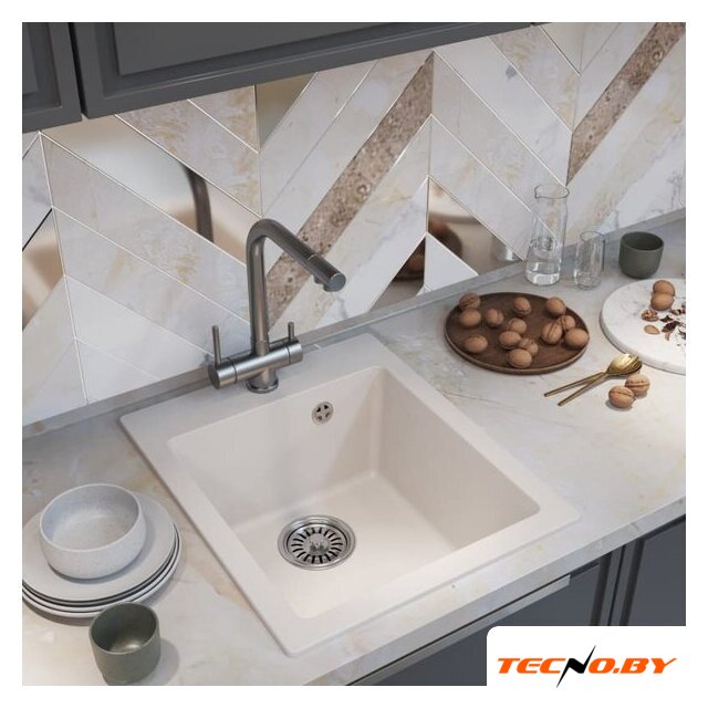 врезная на столешницу, искусственный камень, размеры: 44.5x50 см, глубина чаши: 19 см, в шкаф шириной от 50 см