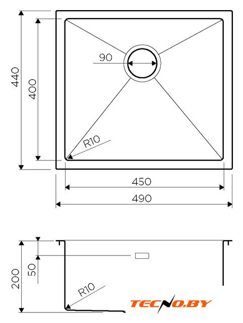 врезная на столешницу/врезная под столешницу/врезная вровень со столешницей, нержавеющая сталь, фактура: матовая, размеры: 44x44 см, глубина чаши: 20 см, в шкаф шириной от 45 см