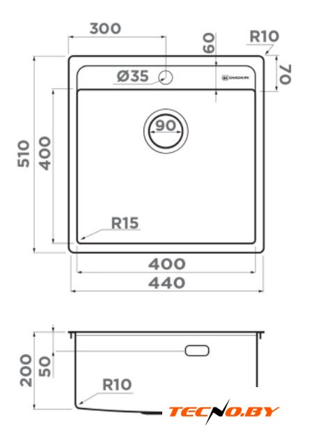врезная на столешницу, искусственный камень, размеры: 100x51 см, глубина чаши: 20 см, в шкаф шириной от 60 см