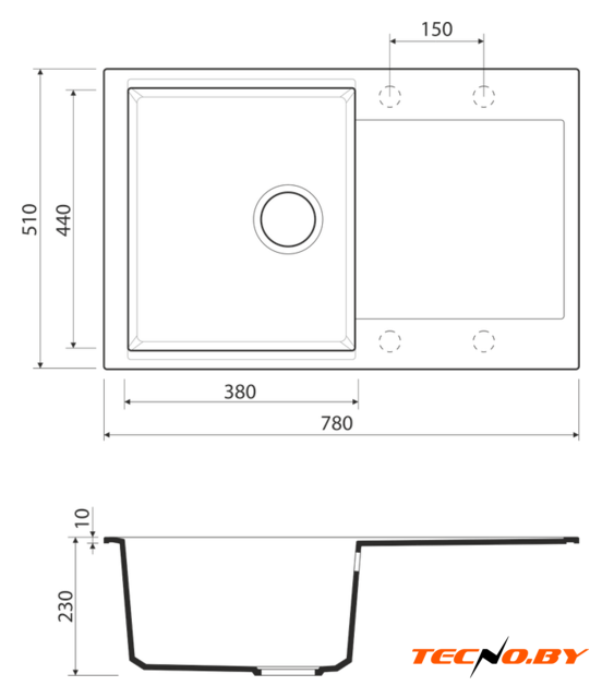 врезная на столешницу, искусственный камень, размеры: 78x51 см, глубина чаши: 23 см, в шкаф шириной от 50 см