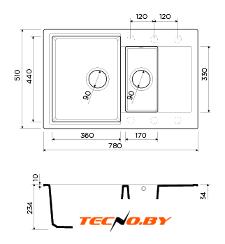 врезная на столешницу, искусственный камень, размеры: 86x51 см, глубина чаши: 23.4 см, в шкаф шириной от 80 см