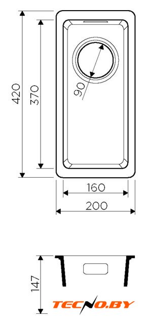 врезная под столешницу, искусственный камень, размеры: 20x42 см, в шкаф 30 см