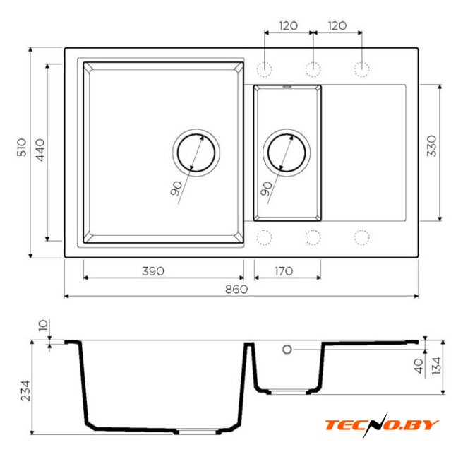 врезная на столешницу, искусственный камень, размеры: 86x51 см, в шкаф 80 см