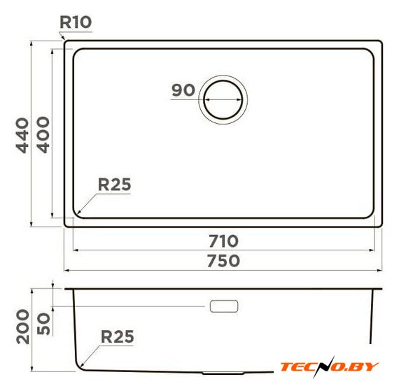 врезная на столешницу/врезная под столешницу/врезная вровень со столешницей, нержавеющая сталь, размеры: 74x44 см, глубина чаши: 20 см, в шкаф шириной от 80 см