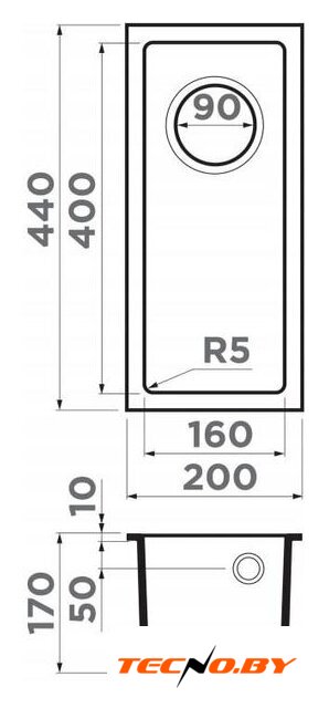 врезная под столешницу, искусственный камень, размеры: 20x42 см, глубина чаши: 14.7 см, в шкаф шириной от 30 см