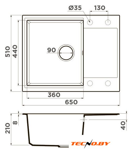 врезная на столешницу, искусственный камень, размеры: 86x51 см, глубина чаши: 23 см, в шкаф шириной от 60 см