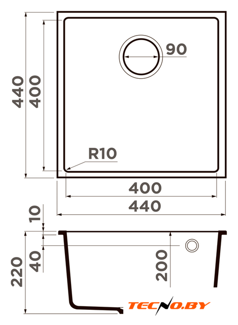 врезная под столешницу, искусственный камень, размеры: 54x44 см, глубина чаши: 22 см, в шкаф шириной от 60 см