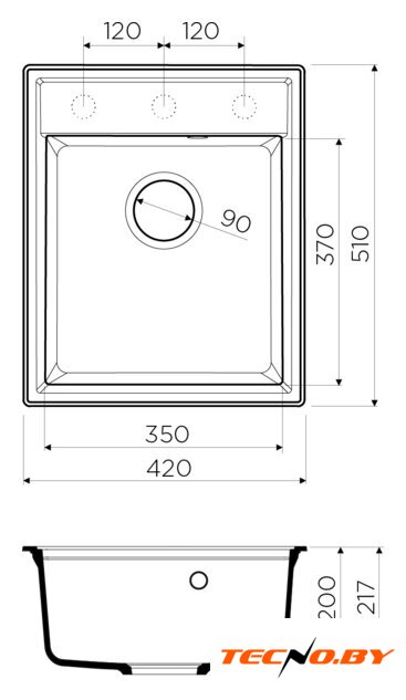 врезная на столешницу, искусственный камень, размеры: 42x51 см, глубина чаши: 21.7 см, в шкаф шириной от 40 см