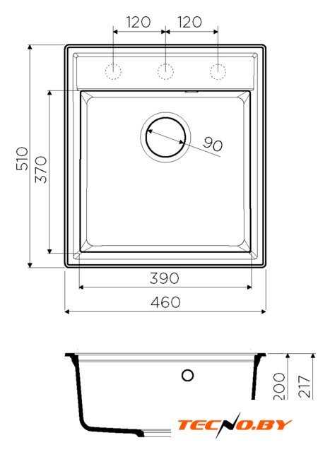 врезная на столешницу, искусственный камень, размеры: 46x51 см, в шкаф 45 см