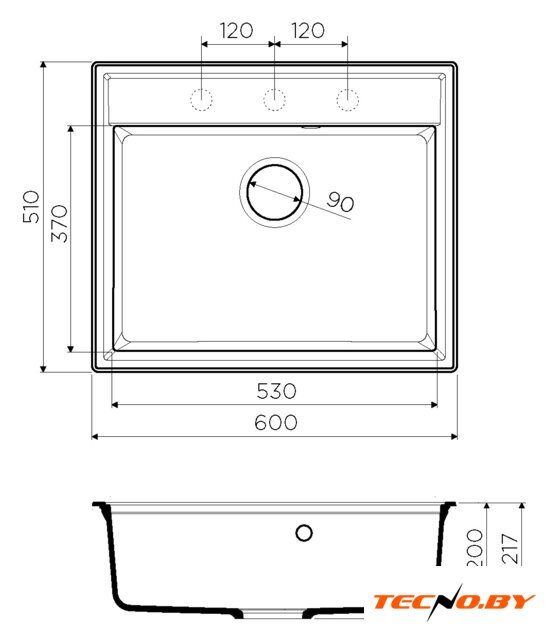 врезная на столешницу, искусственный камень, размеры: 60x51 см, глубина чаши: 20 см, в шкаф шириной от 60 см