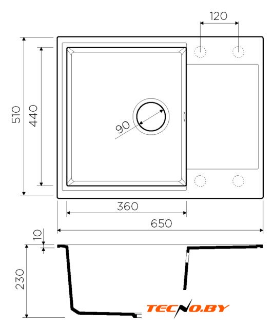 врезная под столешницу, нержавеющая сталь, размеры: 44x44 см, глубина чаши: 20 см, в шкаф шириной от 50 см