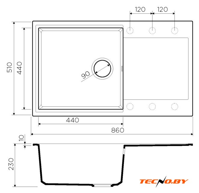 врезная на столешницу, искусственный камень, размеры: 78x51 см, глубина чаши: 23 см, в шкаф шириной от 60 см