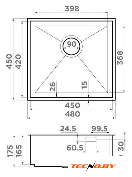 врезная под столешницу/интегрированный, нержавеющая сталь, размеры: 54x44 см, глубина чаши: 17.5 см, в шкаф шириной от 60 см
