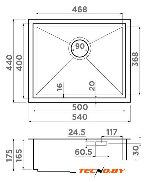 врезная на столешницу/врезная под столешницу/врезная вровень со столешницей, нержавеющая сталь, фактура: матовая, размеры: 54x44 см, глубина чаши: 20 см, в шкаф шириной от 60 см