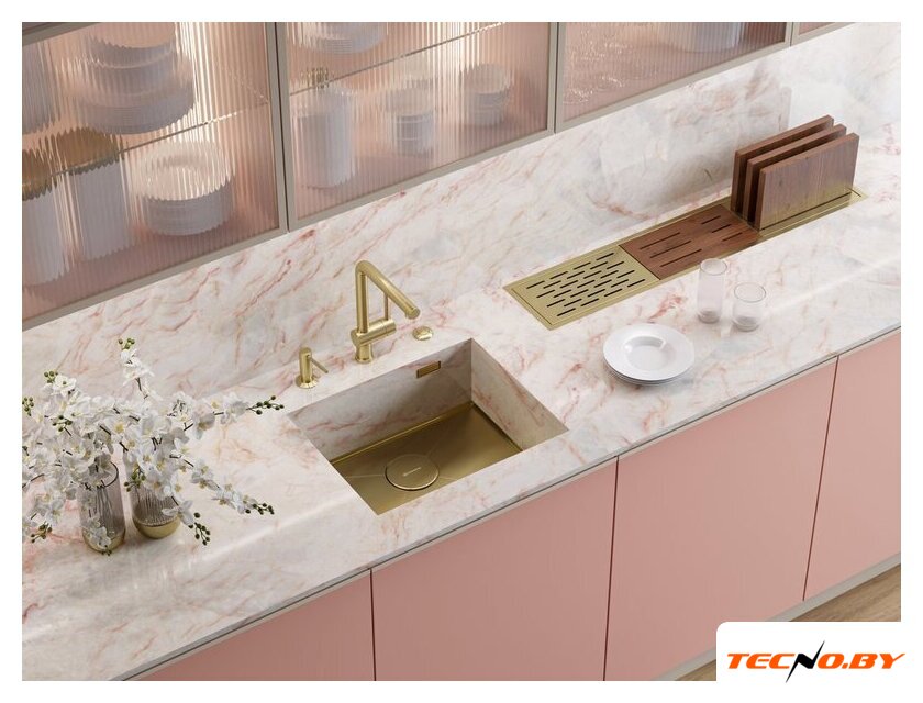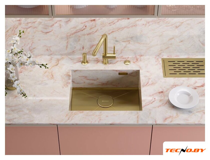 врезная на столешницу/врезная под столешницу/врезная вровень со столешницей, нержавеющая сталь, фактура: матовая, размеры: 44x44 см, глубина чаши: 20 см, в шкаф шириной от 45 см